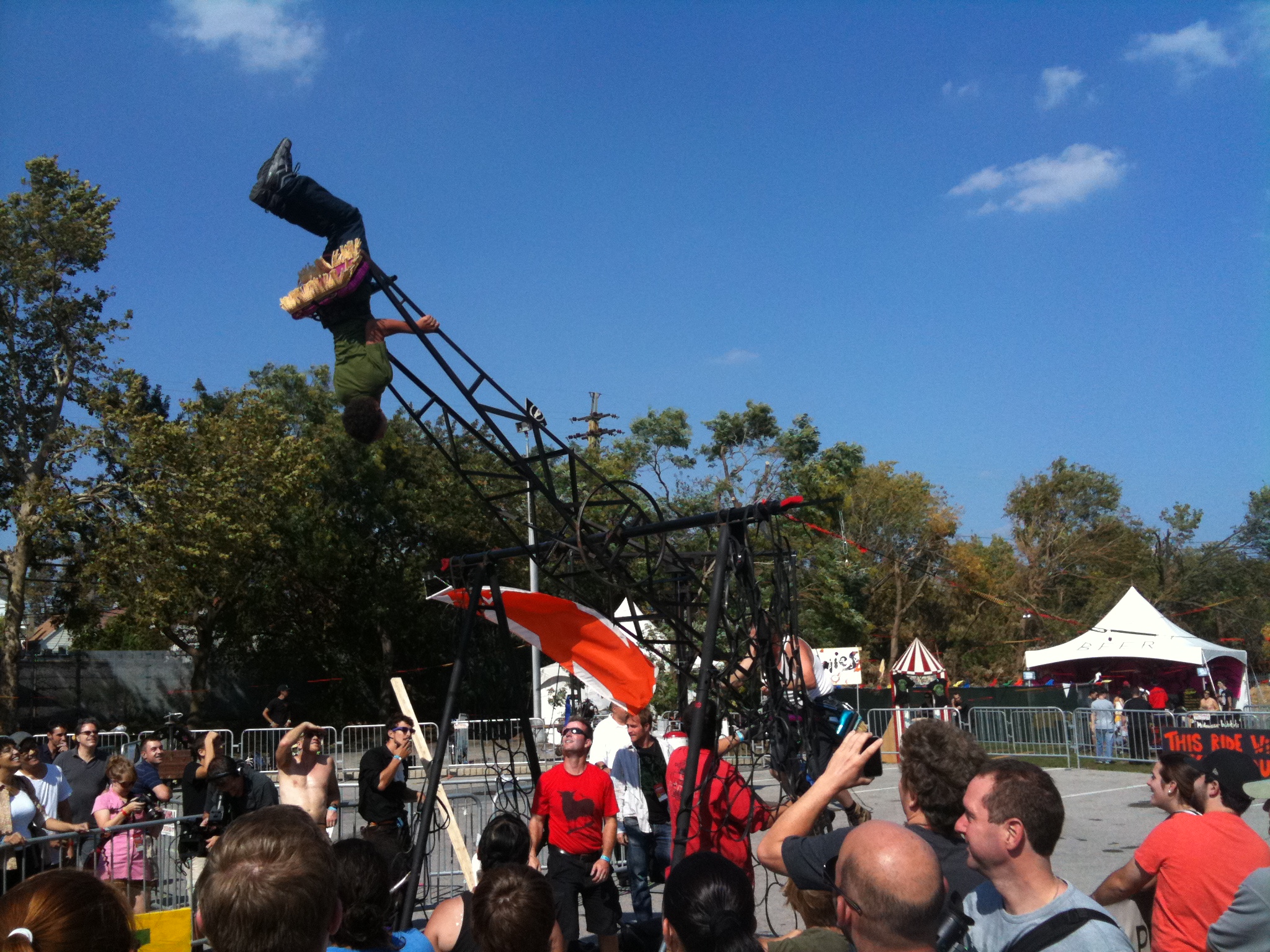Festival Participants defy gravity on a rotating teeter-totter.