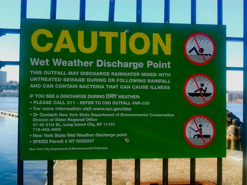 In this way, 27 to 30 billion gallons of untreated sewage enter New York City waterways each year via hundreds of CSO outfalls, says Phillip Musegaas of Riverkeeper, a New York clean water advocacy group. Musegaas says he finds it especially upsetting that city officials don’t effectively warn the thousands of people like Brougham who use the waterways and could encounter harmful bacteria during overflow events.