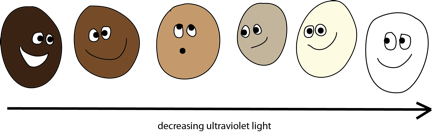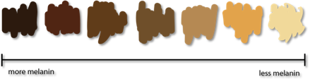 But just as some early humans got lucky by having less hair, some were also born with better protection from UV. Melanin is an ingredient in the skin that acts like a natural sunscreen, shielding folate from the harmful effects of UV light. The amount of melanin in skin determines its pigmentation: more of it makes darker brown skin, while less melanin makes paler skin. Those of our ancestors lucky enough to have more melanin were at a reproductive advantage, allowing them to spread the genes that encourage the production of darker skin.
