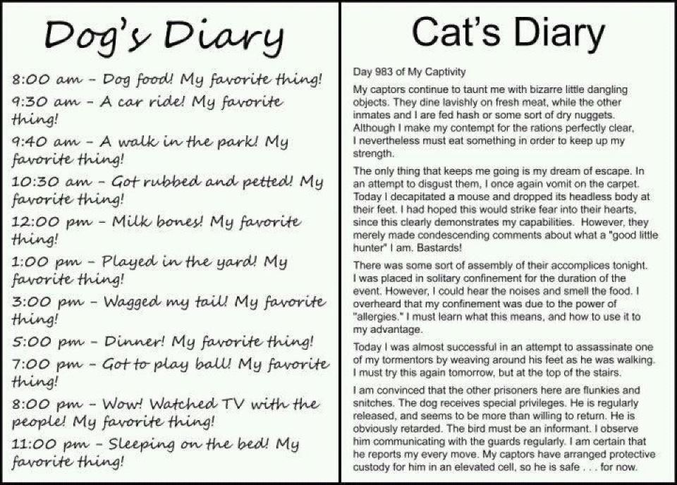 Dogs and cats are certainly perceived very differently, as illustrated by this bit of humor that found its way into my inbox this week: